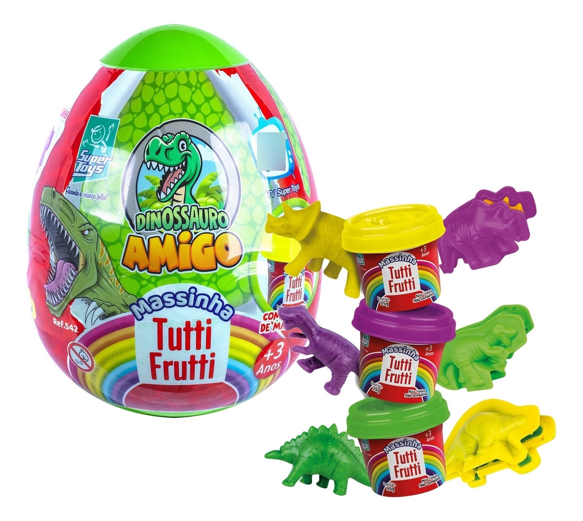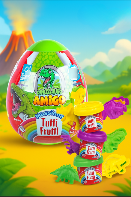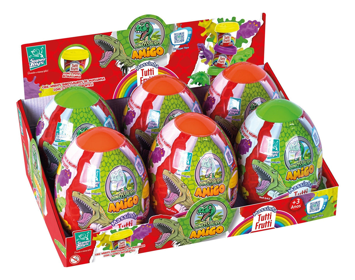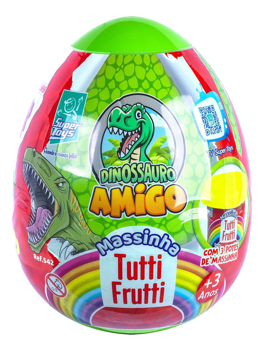 O ovo do Dinossauro Amigo veio para alegrar as atividades da criançada, Ele vem em uma divertida embalagem em formato de ovo de dinossauro e contém massinhas coloridas com aroma tutti frutti e moldes de dinossauros para a criança brincar e criar figuras. Ideal para estimular a criatividade, coordenação motora e imaginação das crianças, o brinquedo é indicado para maiores de 3 anos. Uma ótima opção para presentear a criançada que são fãs do dinossauro.