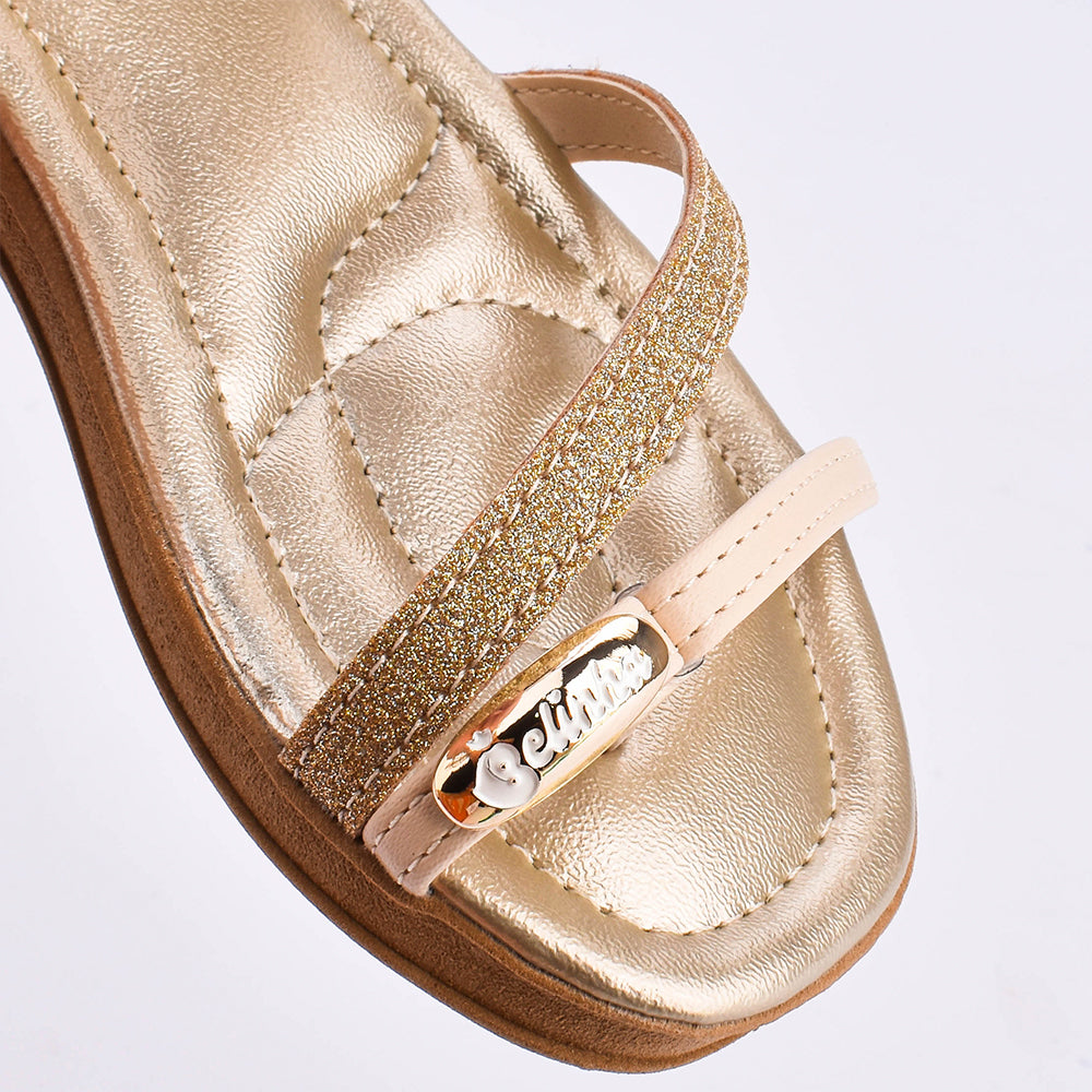 Rasteira Flat Menina Infantil Kidy Marfim e Ouro