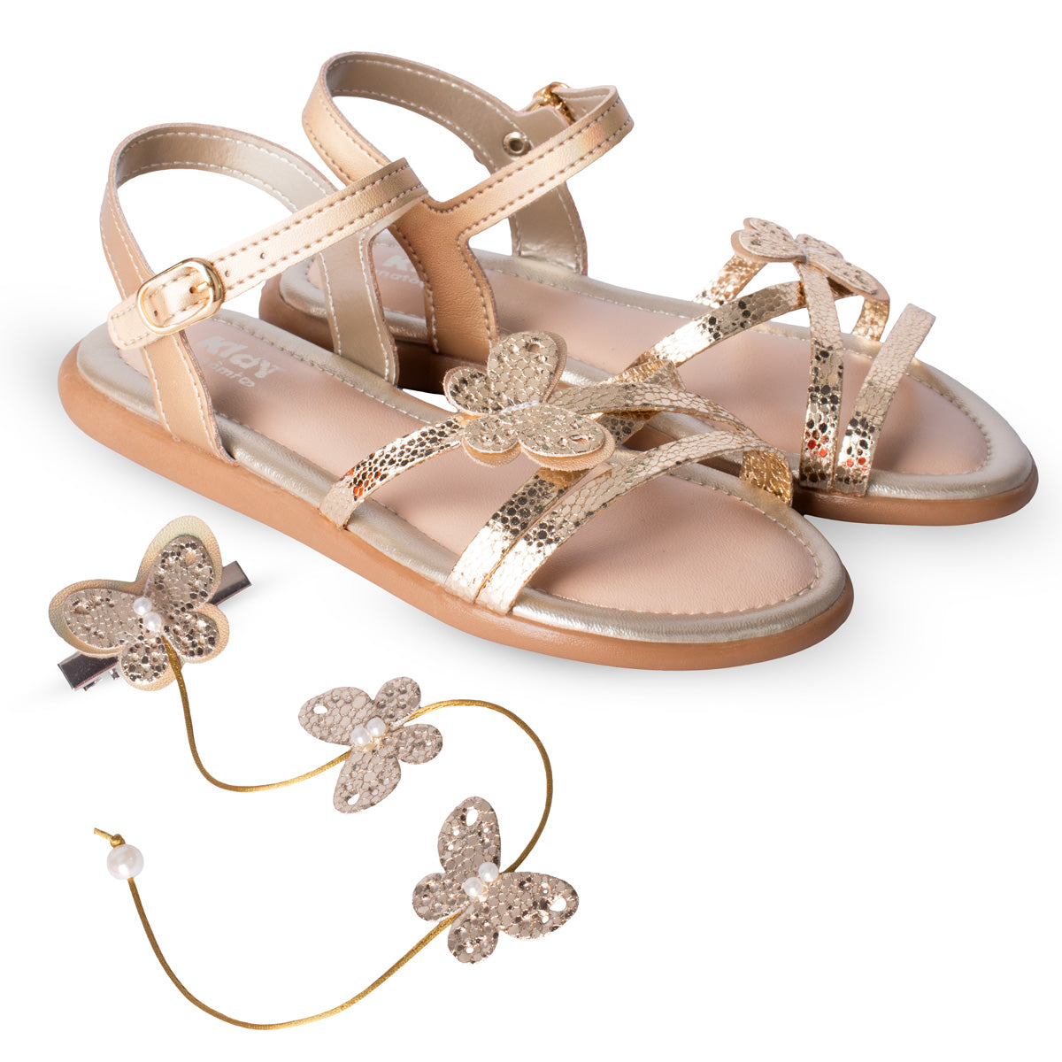 Sandália Kidy Cristal Ouro com Acessório de Cabelo