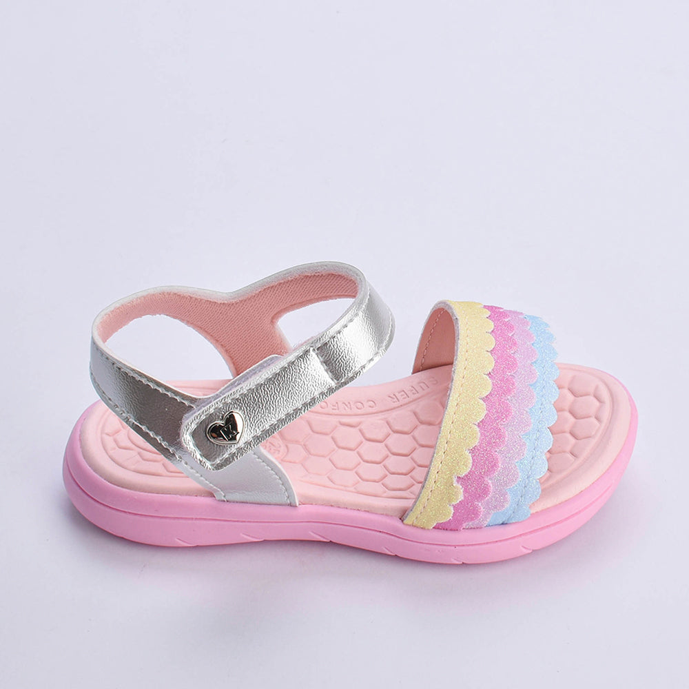 Sandália Menina Infantil Kidy Toys Baby Prata Colorido