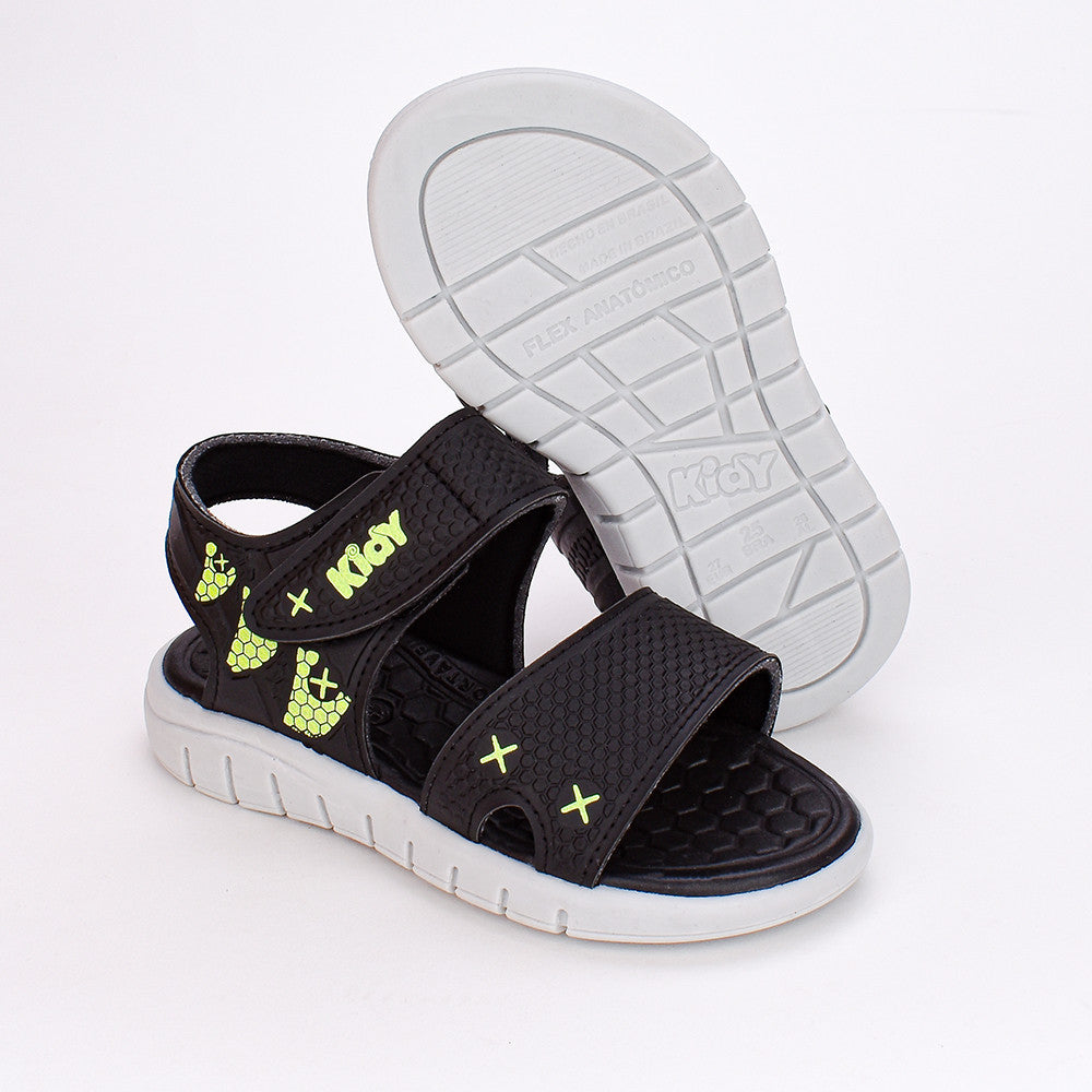 Sandália Menino Infantil Kidy Toys Preto Gelo e Amarelo