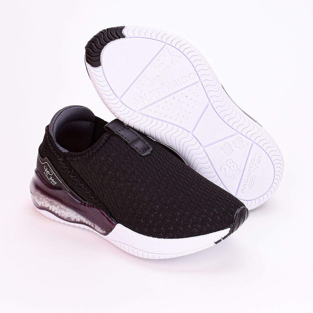 Tênis Menino Infantil K360 Alpha Air Preto e Prata - Kidy O Tênis K360 Alpha Air é desenvolvido especificamente para acompanhar o crescimento e as atividades diárias das crianças. Seu solado em TR oferece excelente aderência antiderrapante, garantindo segurança em diferentes superfícies e condições de uso. A estrutura anatômica e flexível respeita a biomecânica natural do pé infantil, permitindo movimento livre e confortável durante brincadeiras e deslocamentos. O design inteligente combina praticidade para os responsáveis com autonomia para a criança, facilitando o calce independente. A combinação de cores preto e prata traz versatilidade estética, combinando com diversos looks do dia a dia. Desenvolvido com a expertise Kidy em calçados infantis, este tênis une funcionalidade, conforto e durabilidade para os pequenos que estão sempre em movimento.