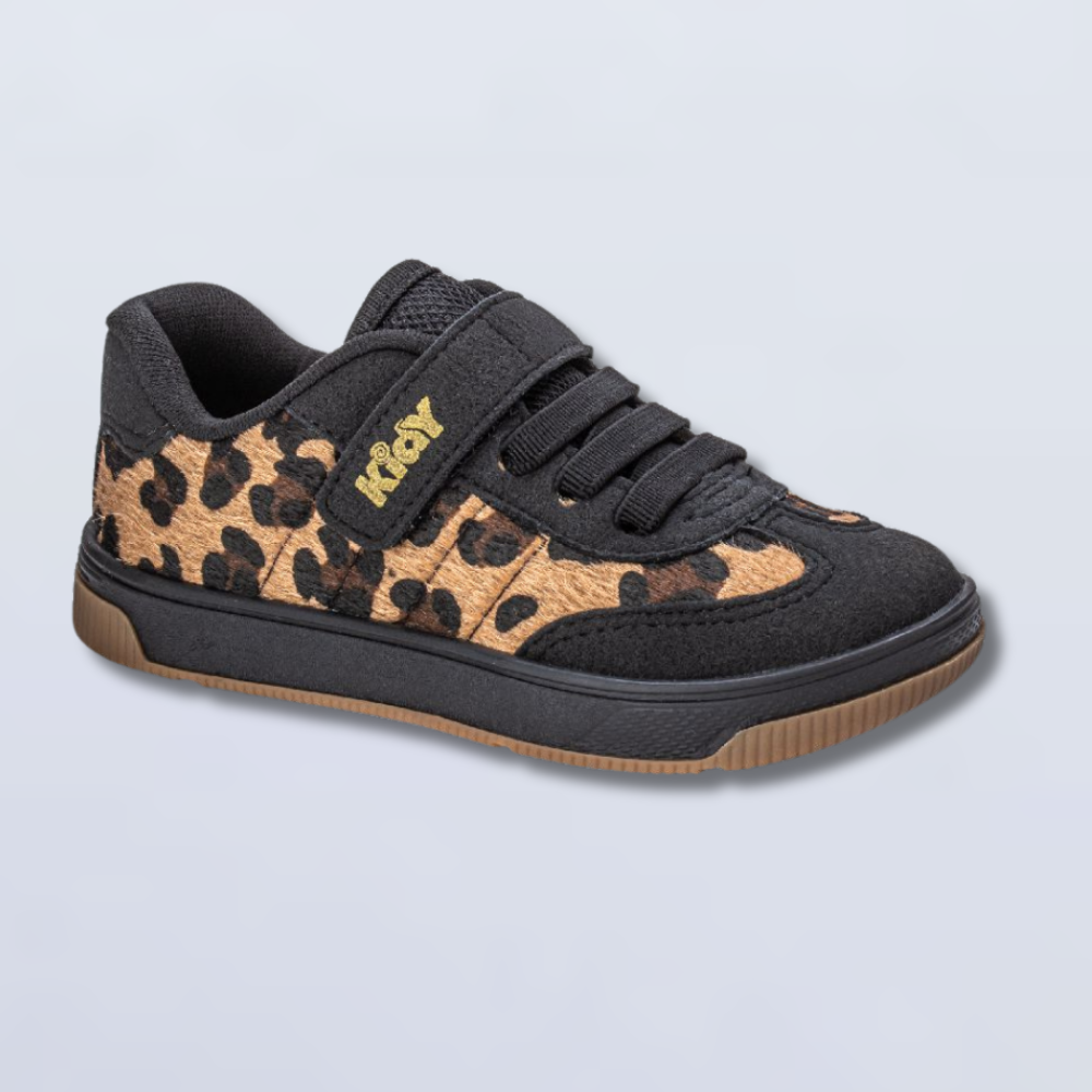Tênis Infantil Kidy Astral Preto/Onça Estilo e Conforto para Meninas Cheias de Atitude!