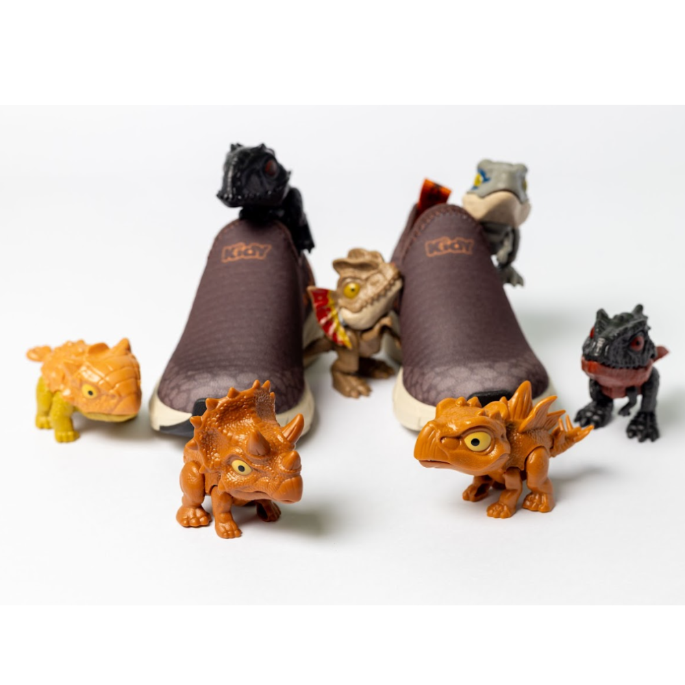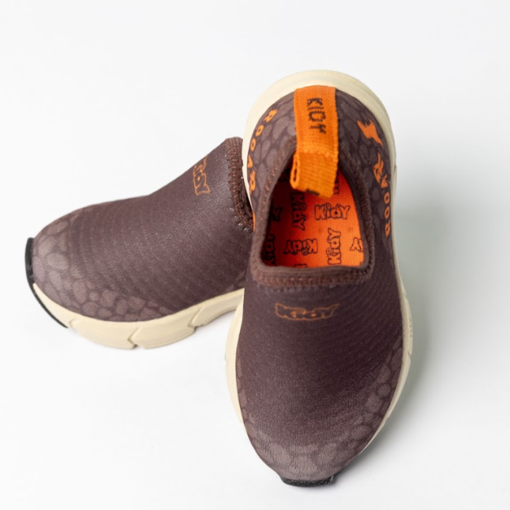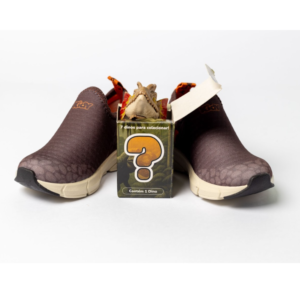 Tênis Infantil Menino Calce Fácil Kidy Energy Baby Respitec Marrom e Laranja + Brinquedo Dino Surpresa Colecionável