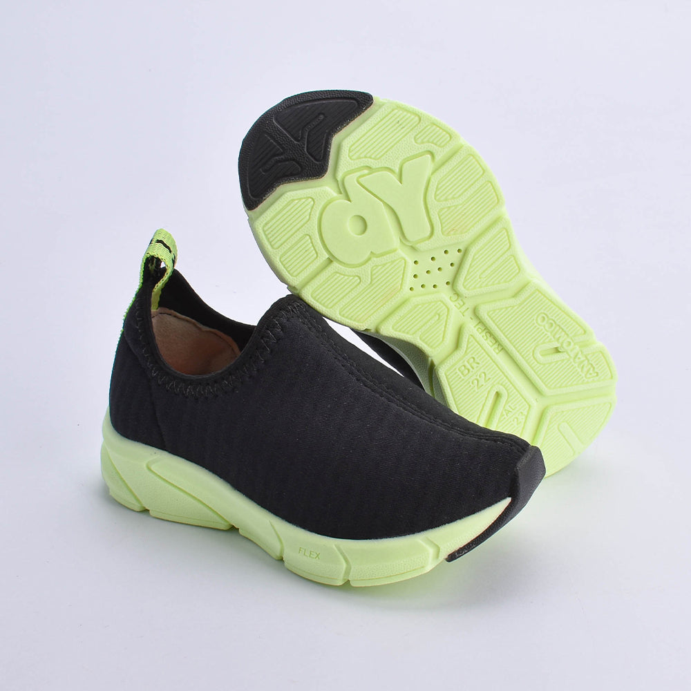 Tênis Kidy Energy Bebê Respitec Preto com Neon - Calce Fácil, Leve e Confortável
