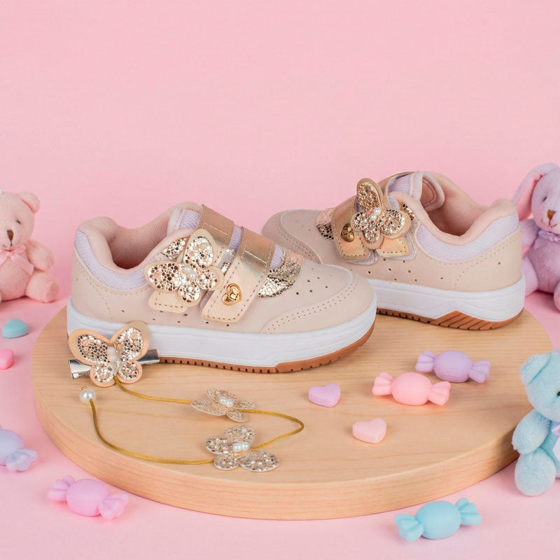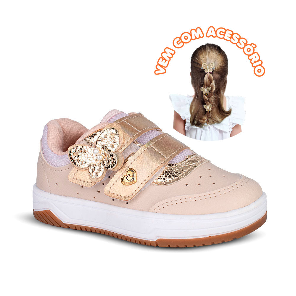 O Tênis Kidy Happy Marfim é a escolha perfeita para unir conforto, segurança e glamour no dia a dia das meninas! Com fechamento em dupla fita adesiva , garante praticidade para calçar e ajustar, oferecendo autonomia para as pequenas. Seu solado em TR antiderrapante proporciona andar estável e seguro, ideal para os primeiros passos, enquanto o design anatômico e flexível cuida do desenvolvimento saudável dos pezinhos. Além disso, conta com a inovadora Tecnologia do Equilíbrio, que dá mais estabilidade e segurança durante as brincadeiras. E para completar o visual cheio de charme, o Tênis Kidy Happy ainda acompanha um lindo acessório para os cabelos, deixando cada look ainda mais especial! Mais que um calçado, um conjunto de conforto, segurança e muito estilo para as pequenas arrasarem!