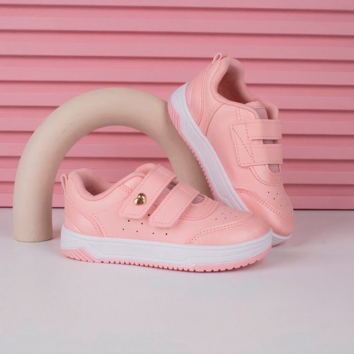 Tênis Infantil Menina Kidy Happy Nude Com Velcro Duplo Confortável e Versátil