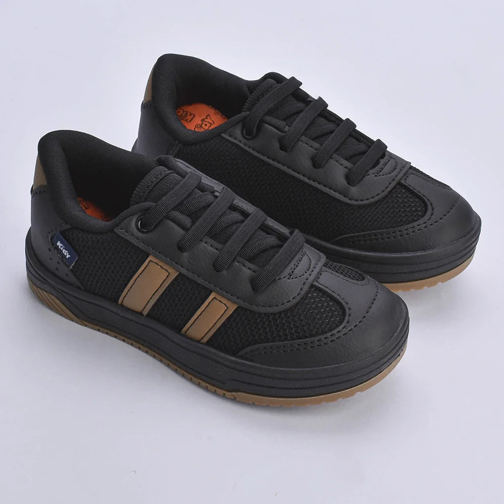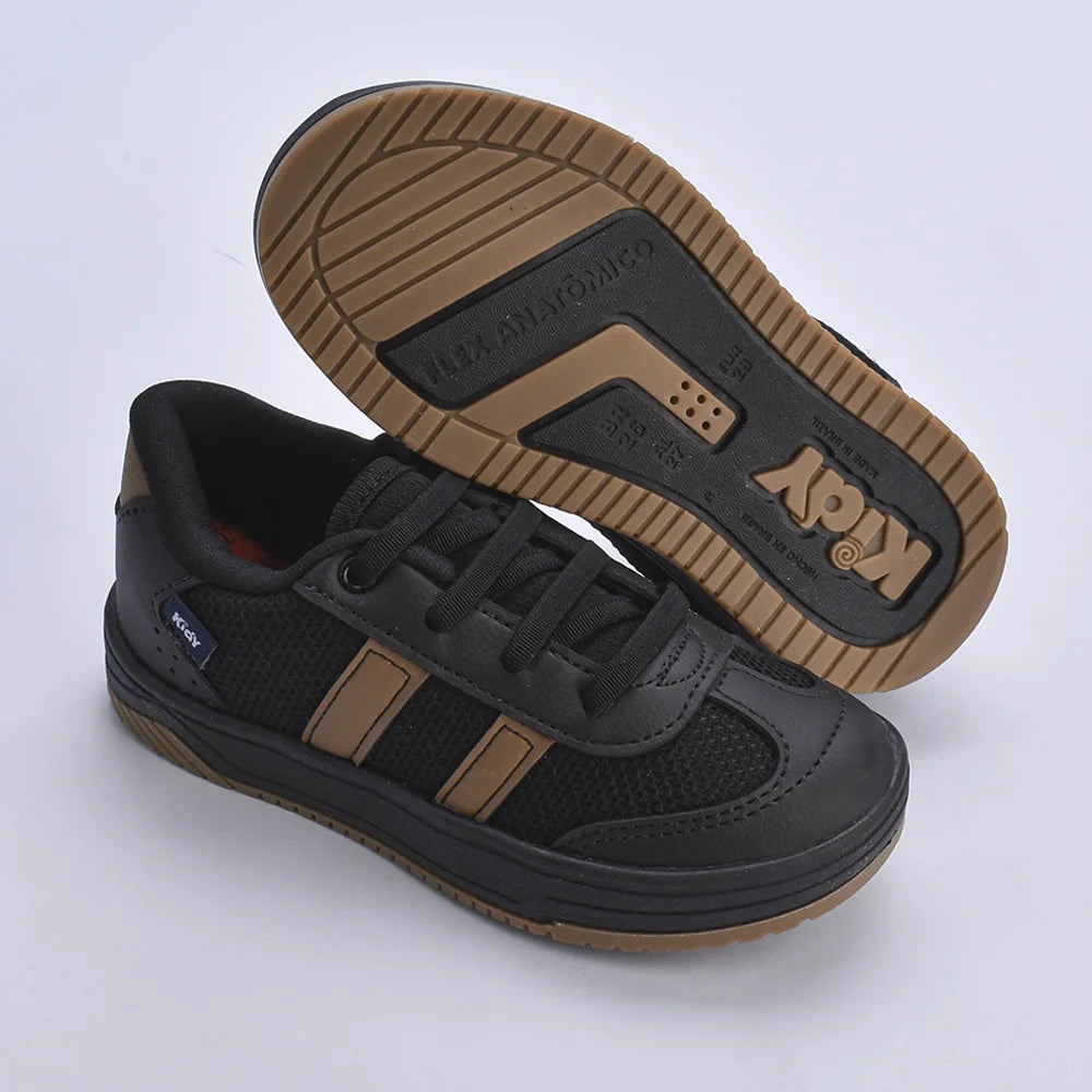 Tênis Menino Infantil Kidy Happy Preto e Caramelo
