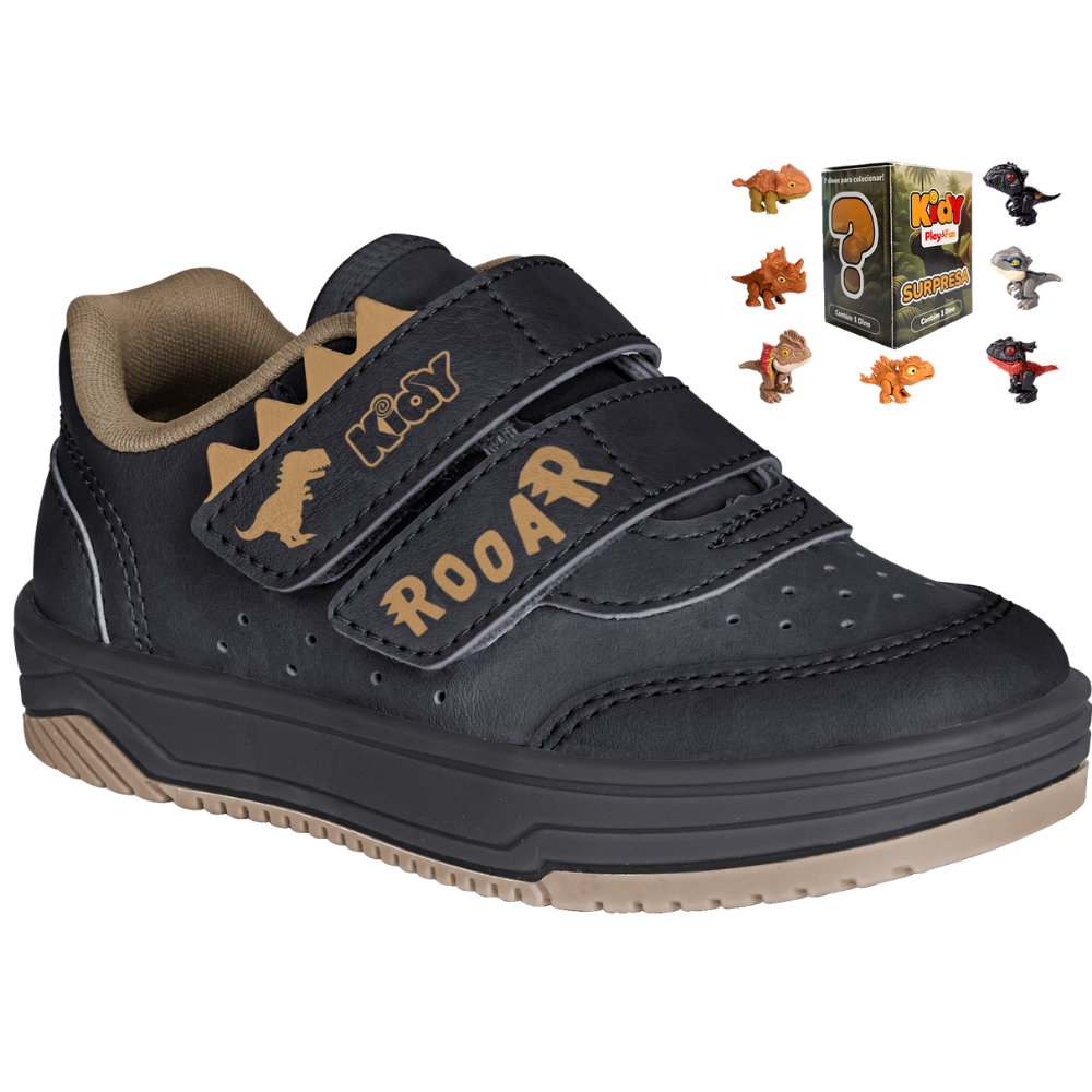 Tênis Infantil Kidy Happy Preto e Caramelo Dino Surpresa