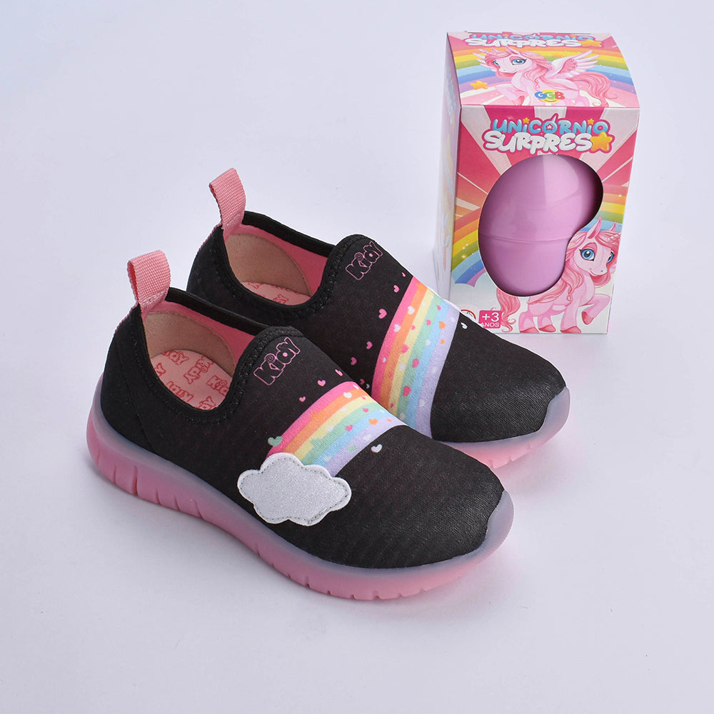 Tênis Menina Infantil Kidy Ultra Flex Preto com Ovo Surpresa Unicórnio