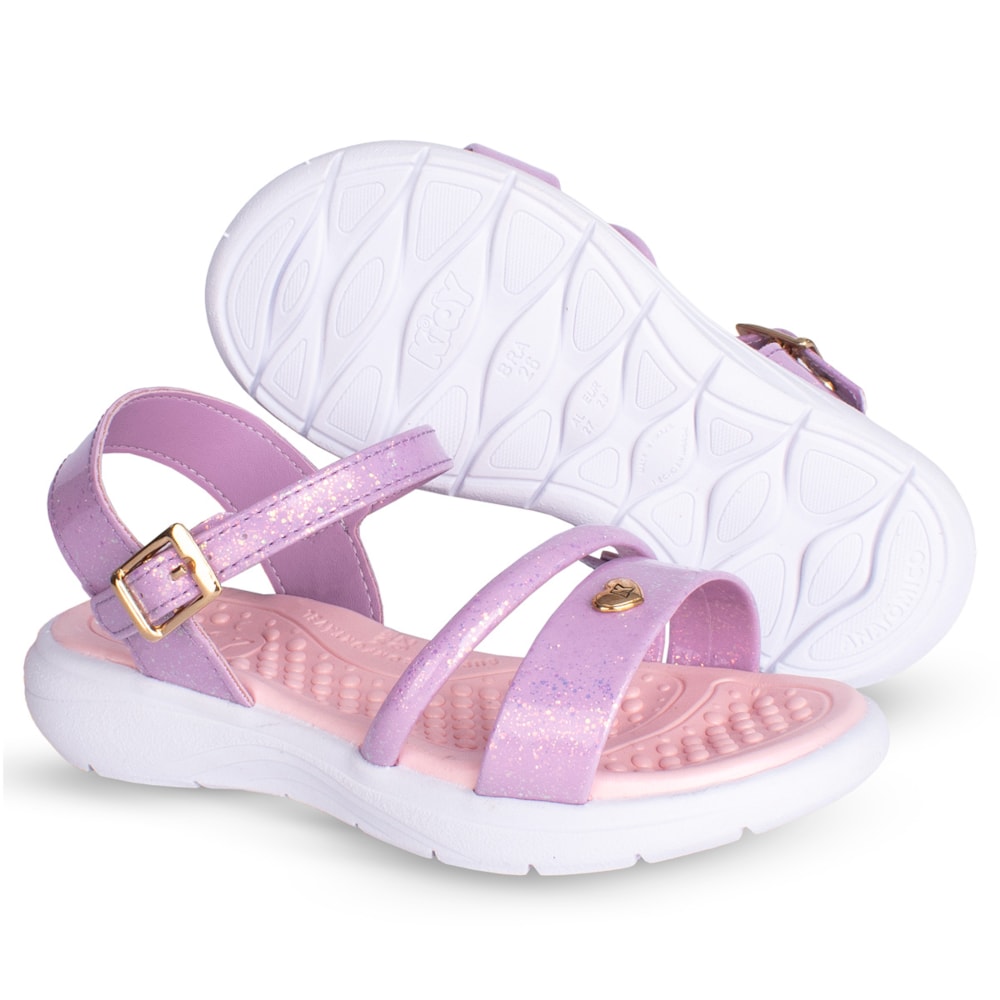 A Sandália Kidy Fly Baby Lilás foi desenvolvida especialmente para acompanhar os primeiros passos das pequenas com segurança, conforto e muito charme. Seu design moderno e delicado, com toque de brilho e tons suaves, encanta as crianças e transmite confiança aos pais na hora da escolha do calçado. Com tecnologias que cuidam de cada detalhe do caminhar, ela possui solado em TR, leve, resistente e com ótima aderência para os primeiros passinhos; palmilha anatômica, que respeita o formato natural dos pezinhos, garantindo apoio e bem-estar; fechamento em fita adesiva, fácil de calçar e ajustar, promovendo autonomia e praticidade; e é super flexível, oferecendo liberdade total para brincar, correr e se divertir! E para deixar o momento ainda mais mágico, a Sandália Kidy Fly Baby acompanha uma exclusiva Bóia de Braço de Unicórnio, que transforma o lazer na piscina ou no banho em um momento de pura diversão e fantasia! Conforto, segurança e magia do jeitinho que as pequenas amam!