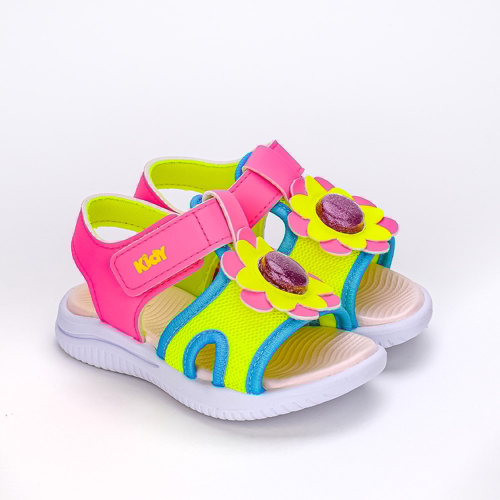A Sandália Papete é um calçado essencial no guarda-roupa das meninas. A Papete Infantil Feminina Kidy oferece tudo o que elas precisam durante a fase dos primeiros passos. Seu cabedal resistente e macio proporciona o máximo conforto para os pés em cores vibrantes neon.E detalhe de flor enfeite que acende.