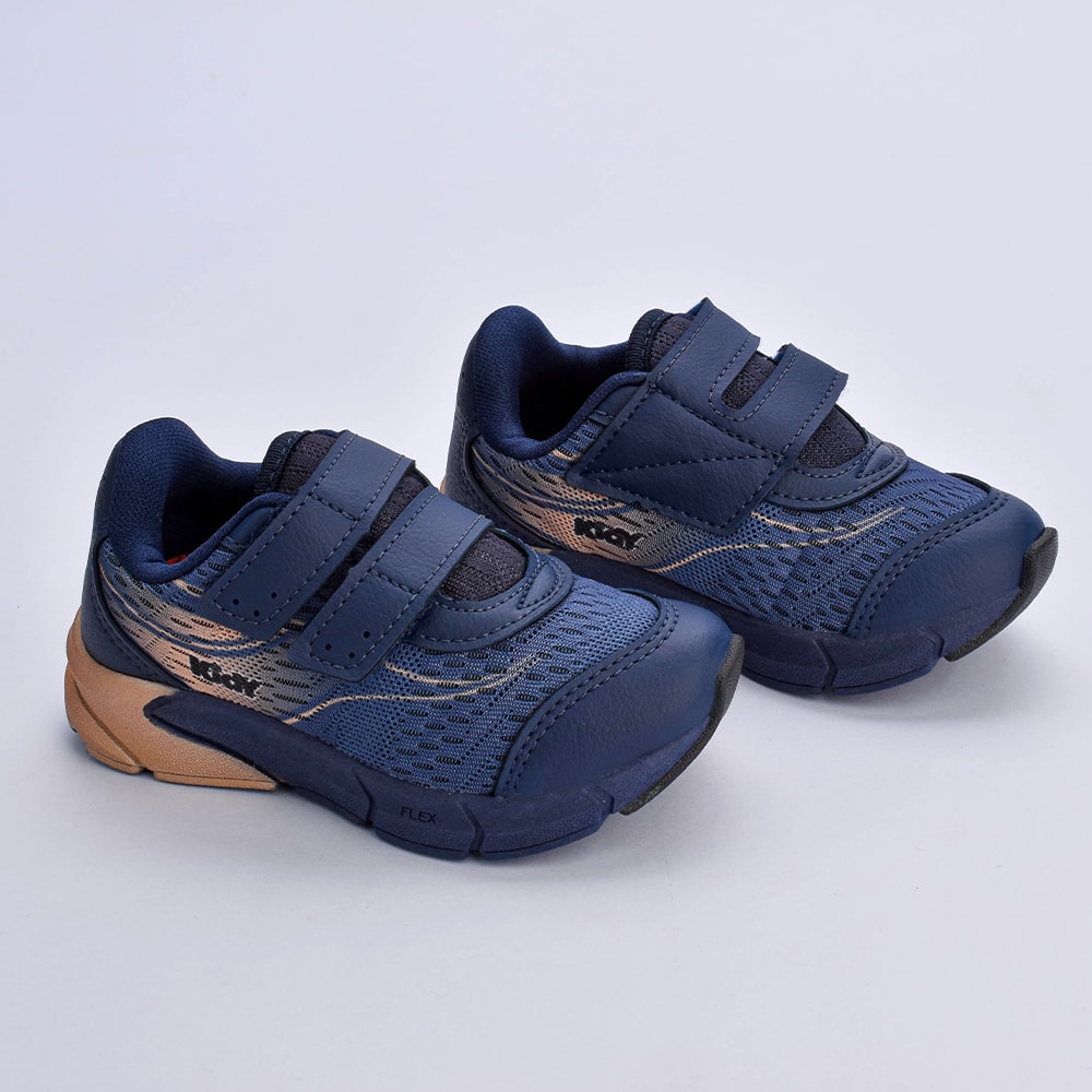 Tênis Infantil Kidy Energy Bebê Marinho com Dourado – Conforto, Segurança e Estilo em Cada Passo O Tênis Infantil Kidy Energy Bebê foi desenvolvido para acompanhar os primeiros passinhos com muito conforto e segurança. Seu design moderno nas cores preto, azul e verde neon garante um visual cheio de energia e estilo para os pequenos. O fechamento em fita adesiva dupla facilita o calce, trazendo praticidade para o dia a dia das crianças e dos pais. O solado em TR antiderrapante proporciona estabilidade, enquanto o formato anatômico e flexível cuida da saúde dos pés em desenvolvimento. A tecnologia Passos Fortes garante mais firmeza e confiança em cada movimento.
