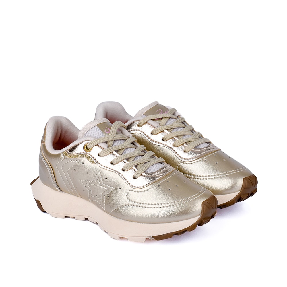 Tênis Infantil Menina K360 Jogger Star Conforto e Amortecimento Dourado Kidy