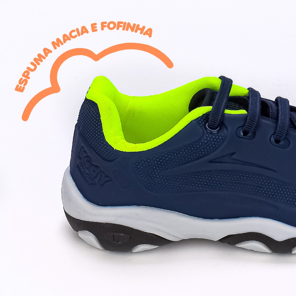 O fechamento com elástico além de facilitar o momento do calce conceden praticidade e autonomia para os pequenos se calçarem sozinhos.
