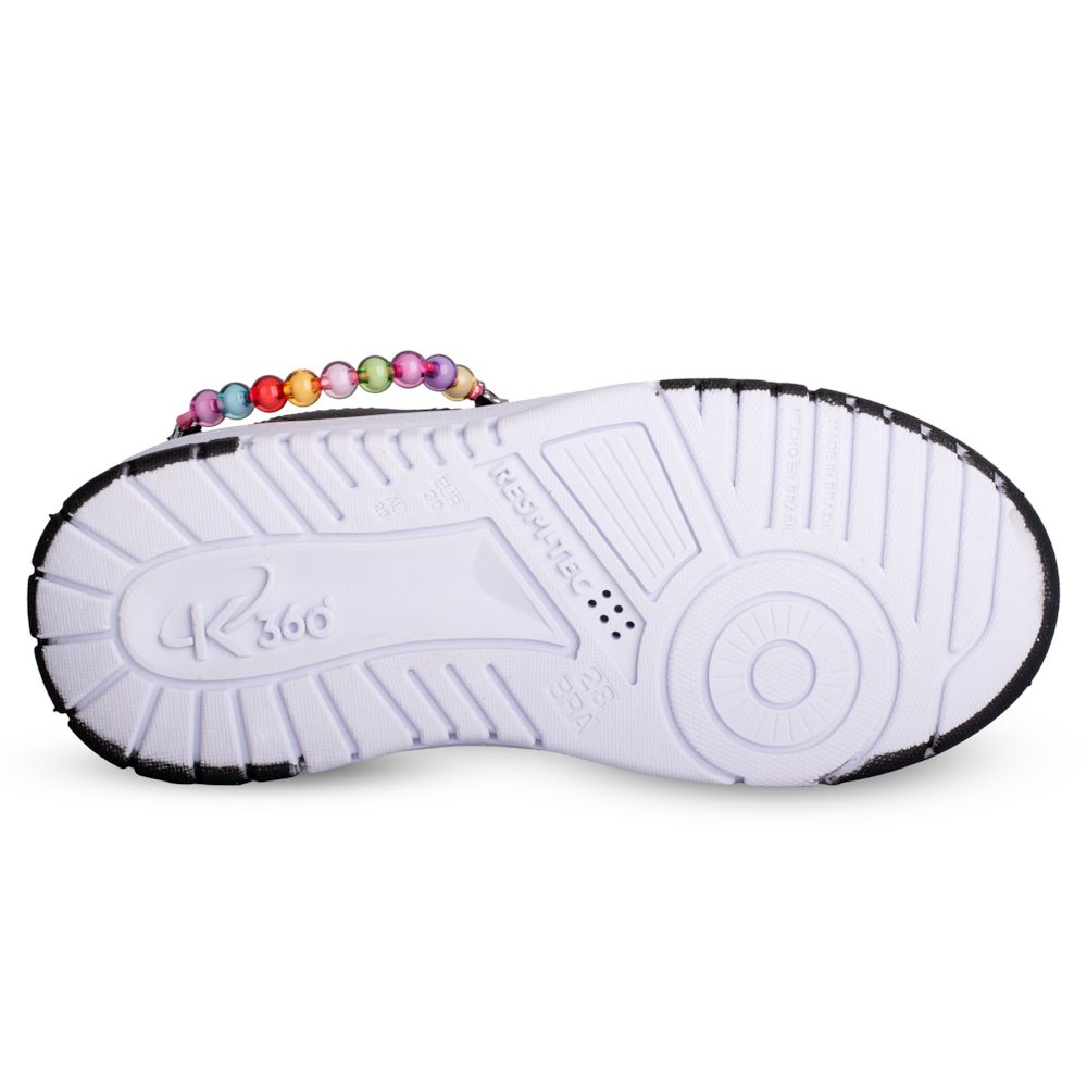 O charme que as meninas merecem está no Tênis Kidy K360 Estiloso Respitec Preto! Com design moderno e detalhes em glitter que fazem brilhar a cada passo, ele acompanha uma linda correntinha exclusiva para deixar o look ainda mais estiloso. Desenvolvido com solado em TR antiderrapante, garante passos fortes, seguros e estáveis. Seu formato anatômico proporciona conforto ideal, enquanto o fechamento em cadarço permite ajuste perfeito aos pezinhos. Além disso, é totalmente flexível, oferecendo liberdade de movimento em todas as aventuras do dia a dia. Um calçado cheio de glamour, conforto e diversão para completar o visual das pequenas com muito estilo!