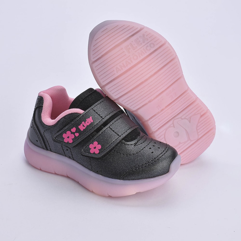 O Kidy Flex Light é perfeito para acompanhar as pequenas em suas aventuras do dia a dia, unindo tecnologia, praticidade e um toque de diversão com luzes no solado. Com fechamento em fita adesiva dupla, garante ajuste firme e autonomia para as crianças calçarem sozinhas. O solado em TR com luzes oferece segurança e equilíbrio, ideal para os primeiros passos, além de ser anti-derrapante, anatômico e flexível, proporcionando liberdade de movimentos e muito conforto. Kidy Flex Light, iluminando os caminhos com segurança e estilo!
