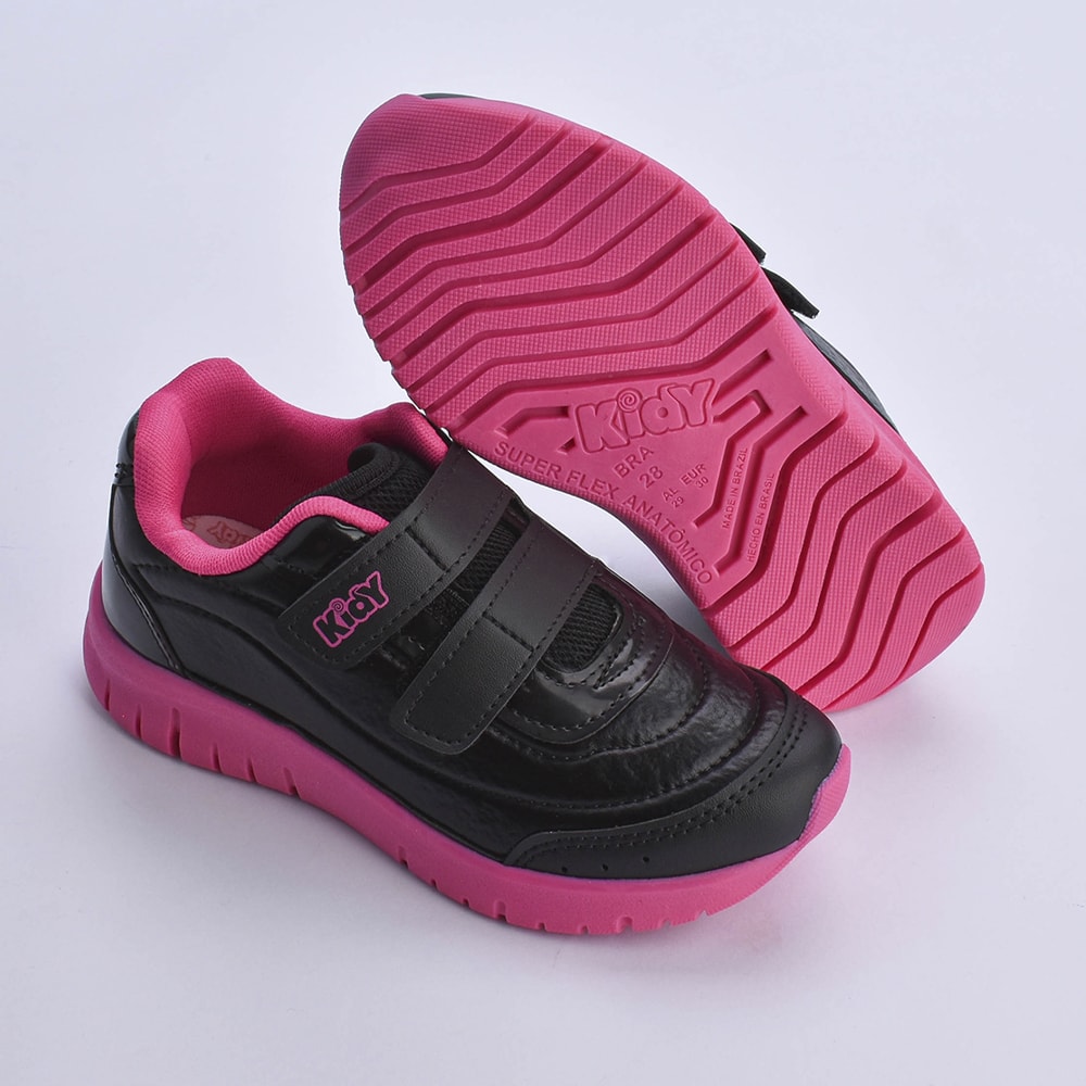 O Tênis Kidy Ultra Flex é perfeito para acompanhar o ritmo das crianças com conforto e segurança. Com calce fácil e duplo fechamento em fita adesiva, proporciona praticidade no dia a dia. Seu design anatômico garante o encaixe ideal nos pezinhos, enquanto o solado superflexível permite movimentos livres e naturais. Com solado antiderrapante, esse modelo é ideal para brincar com segurança. A combinação das cores preto e pink traz um visual moderno e cheio de atitude, perfeito para as pequenas com energia de sobra!.